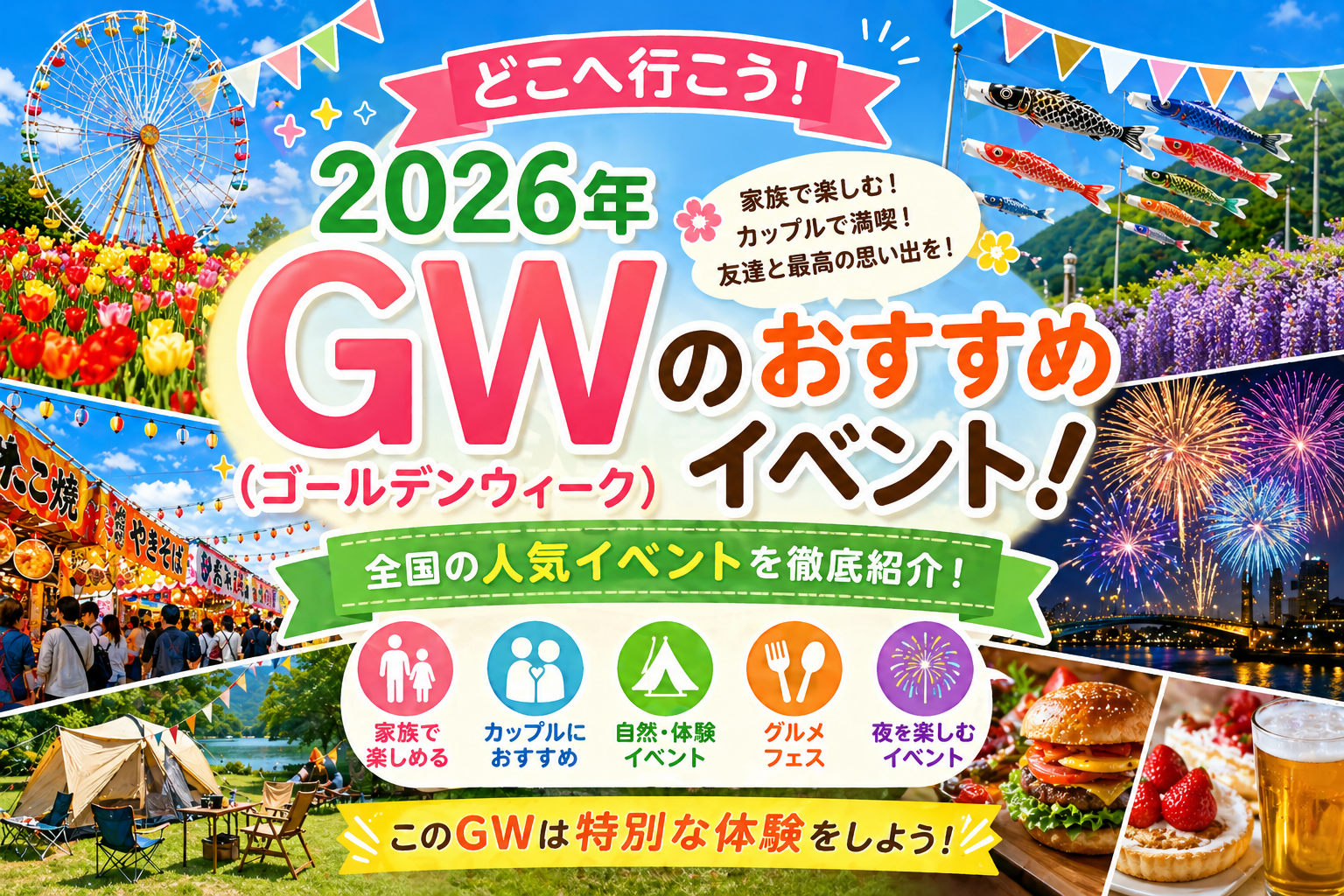 2026年GW(ゴールデンウィーク)は最大で長期連休になるため、イベントも例年以上に充実しています。ただ、選択肢が多すぎて「結局どこがいいのか分からない…」と迷ってしまう人も多いはず。